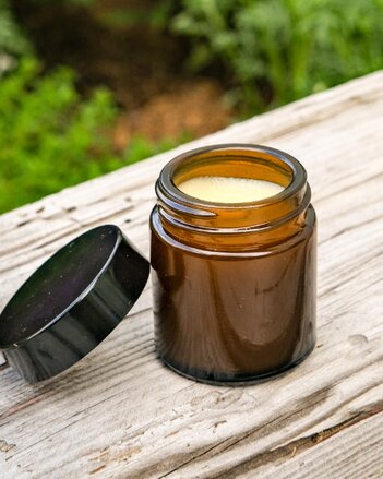 1. Bienenwachs in heißem Wasserbad schmelzen. Sheatbutter dazugeben und ebenfalls schmelzen lassen.