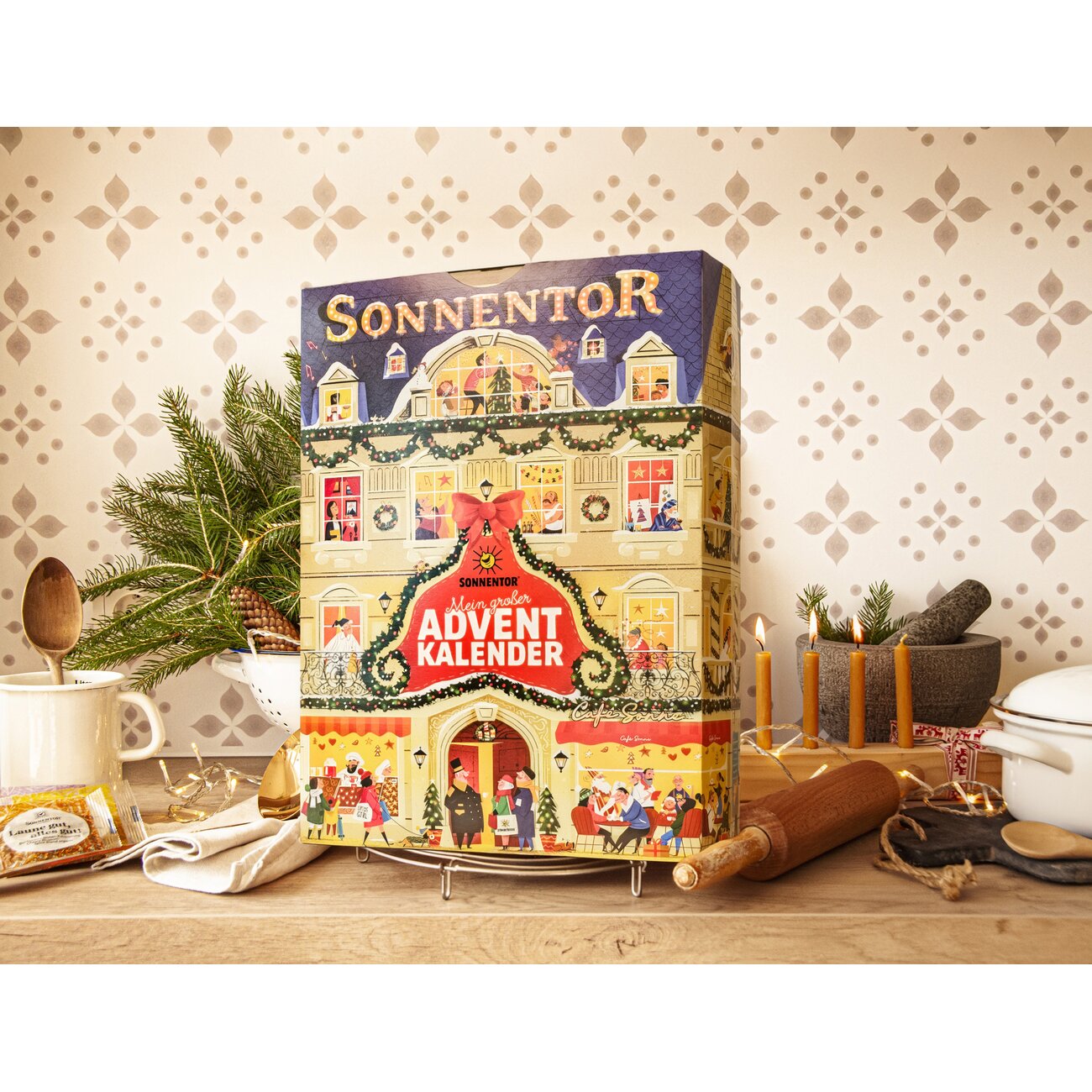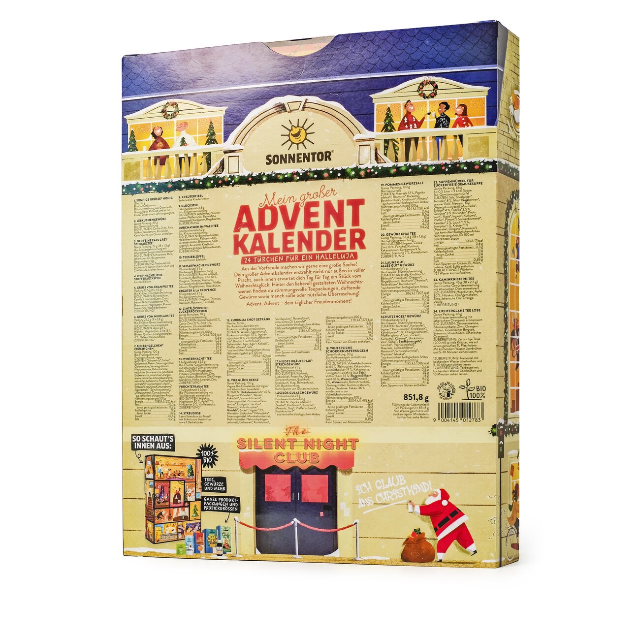 24 Türchen für ein Halleluja - Aus der Vorfreude machen wir gerne eine große Sache! Dein großer Adventkalender erstrahlt nicht nur außen in voller Pracht, auch innen erwartet dich Tag für Tag ein Stück vom Weihnachtsglück: Hinter den liebevoll gestalteten Weihnachtsszenen findest du stimmungsvolle Teepackungen, duftende Gewürze sowie manch süße oder nützliche Überraschung! Advent, Advent – dein täglicher Freudenmoment!
